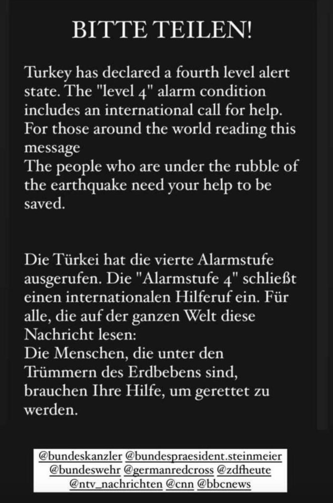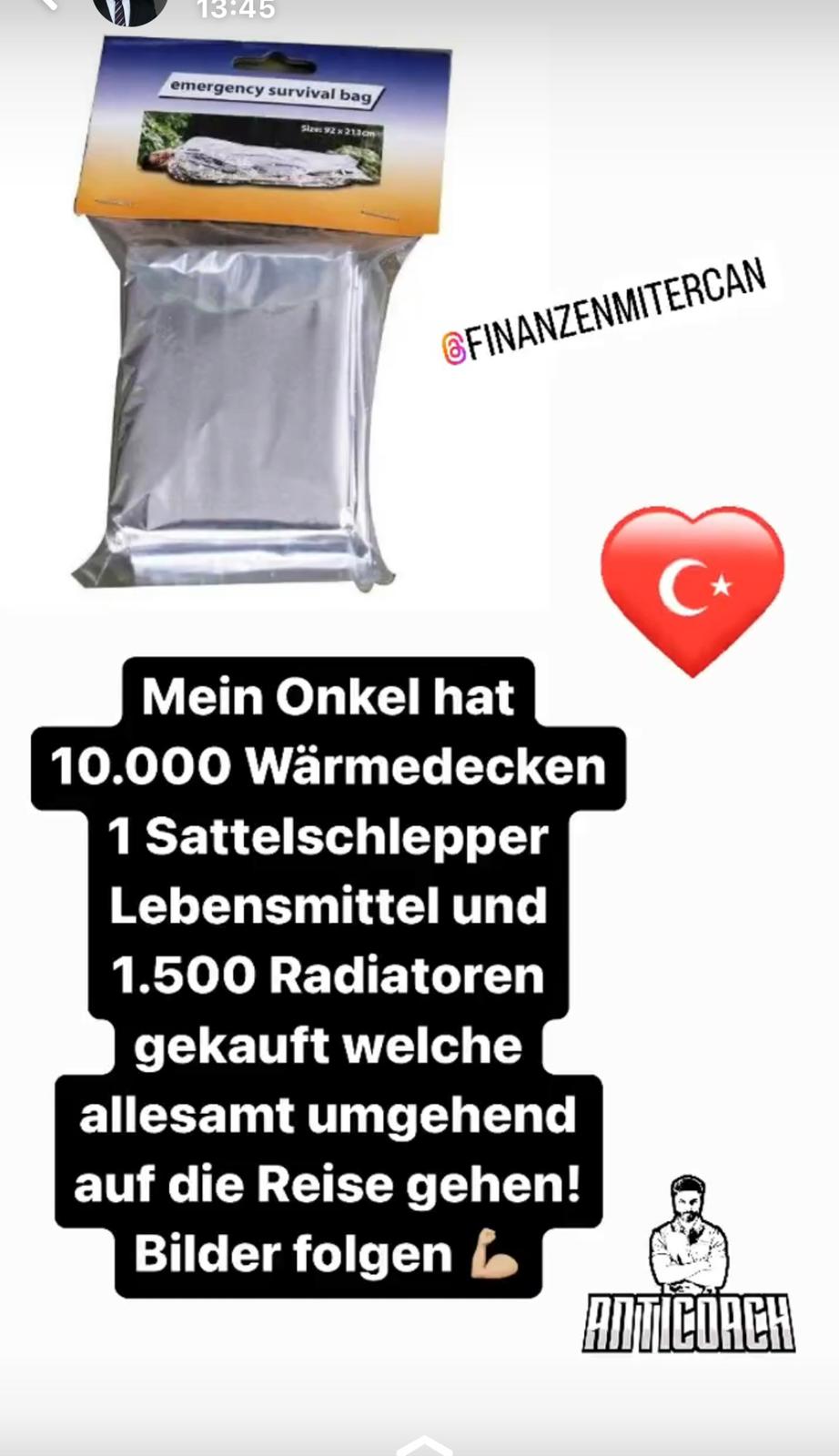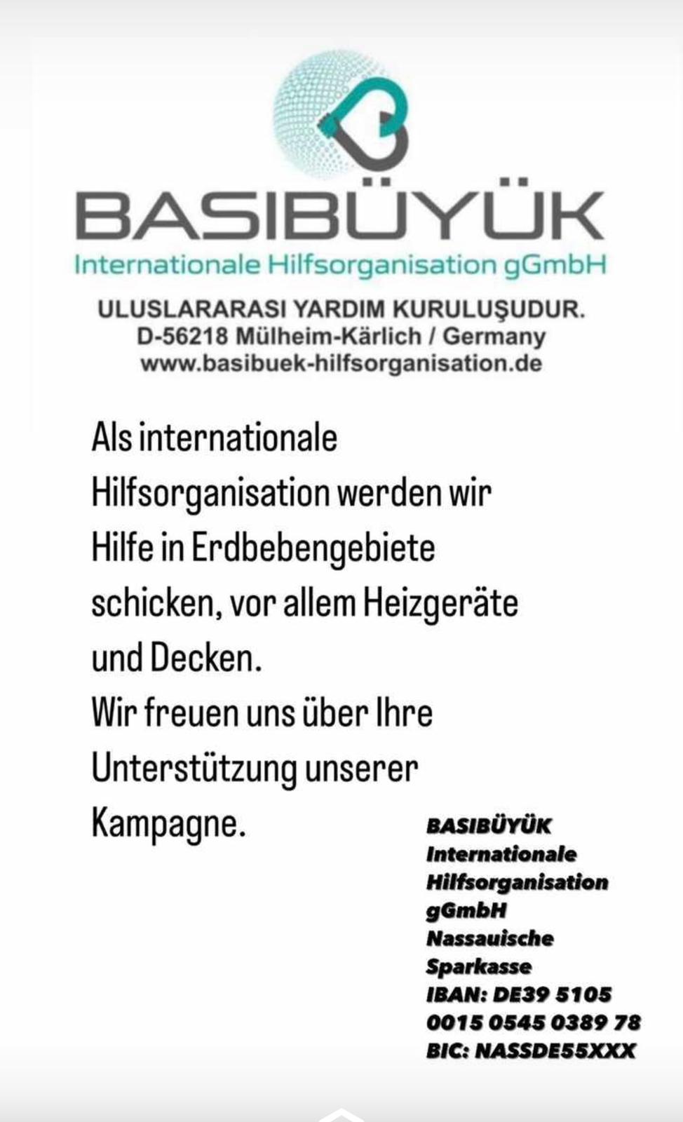 🇩🇪 Als internationale Hilfsorganisation werden wir Hilfe in Erdbebengebiete schicken, vor allem Heizgeräte und Decken. Wir freuen uns über Ihre Unterstützung unserer Kampagne.
